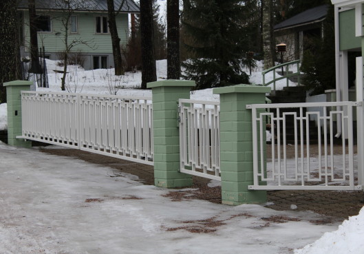 Kohteen portti on loistava esimerkki Pajatsalo-Portin ammattitaidosta. Kuten kuvasta on huomattavissa, portti on suunniteltu mäkeen, jolloin sen on mukailtava maaston muotoa. Jos kohteeseen olisi asennettu tavallinen portti, ovet eivät olisi pystyneet aukeamaan tarvittavassa määrin maanpinnan muodosta johtuen. Erilaisilla teknisillä ratkaisuilla saimme kohteen toteutettua kovaan käyttöön ja silmiä hiveleväksi kokonaisuudeksi.